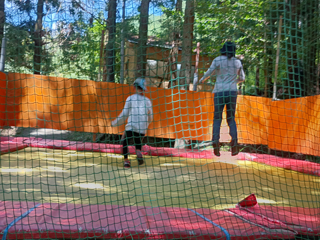 トランポリンでは、上手に真上にジャンプすると体幹が鍛えられます。