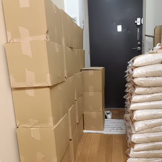 毎年恒例の年末緊急食料支援活動が始まりました。初日の今日は、14個の段ボール箱を郵便局さんにとりに来てもらいました。