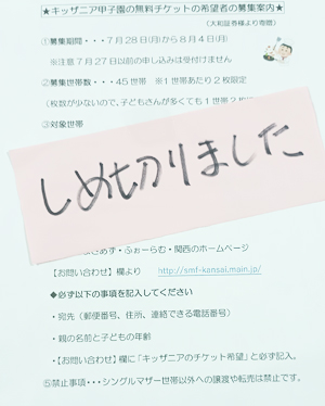 (枚数が少ないので、子どもさんが多くても1世帯2枚になります)